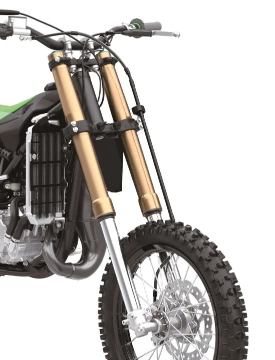 Bu yapı, düşük devirlerde kontrol edilebilir bir güç, yüksek devirlerde ise yarışa uygun agresif bir karakter sağlıyor. 6 vitesli şanzıman ve ıslak çok diskli manuel debriyaj, sürücünün güç bandını verimli şekilde kullanmasına yardımcı oluyor. Son aktarım zincirle sağlanıyor. Kawasaki, 2026 KX85’te süspansiyon tarafına özel önem vermiş.