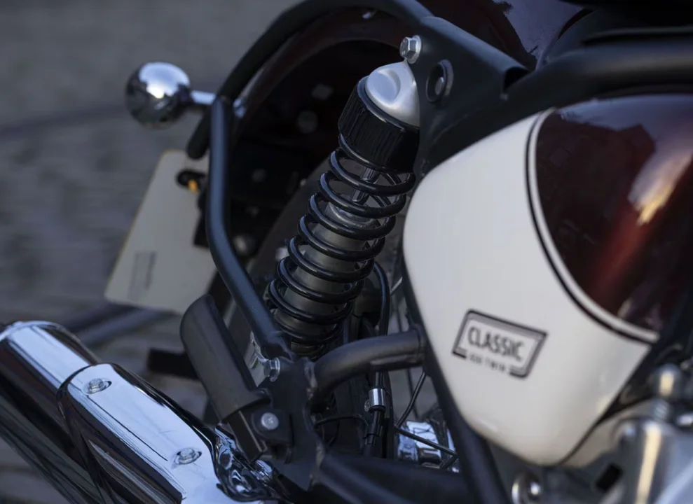 Classic 650’de güç, 6 vitesli şanzıman ve zincirli son tahrik sistemi ile arka tekerleğe aktarılıyor. Şanzıman oranları günlük kullanım ve rahat sürüş için ayarlanmış durumda. Ayrıca motosiklette ıslak, çok plakalı debriyaj kullanılıyor. Bu yapı hem dayanıklılık hem de daha yumuşak debriyaj hissi sunarak özellikle şehir içi sürüşte konfor sağlıyor.