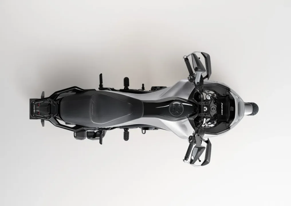 sergilenen versiyonuyla birebir aynı olduğunu ortaya koyuyor. Bu da Atlas GT’nin tasarım anlamında artık son aşamaya geldiğini gösteriyor. Arka plandaki küçük hacimli motosiklet ve scooter kalabalığına rağmen Atlas GT’nin güçlü silüeti dikkat çekiyor. Dökme jantları ve iri gövde yapısıyla premium bir duruş sergiliyor.