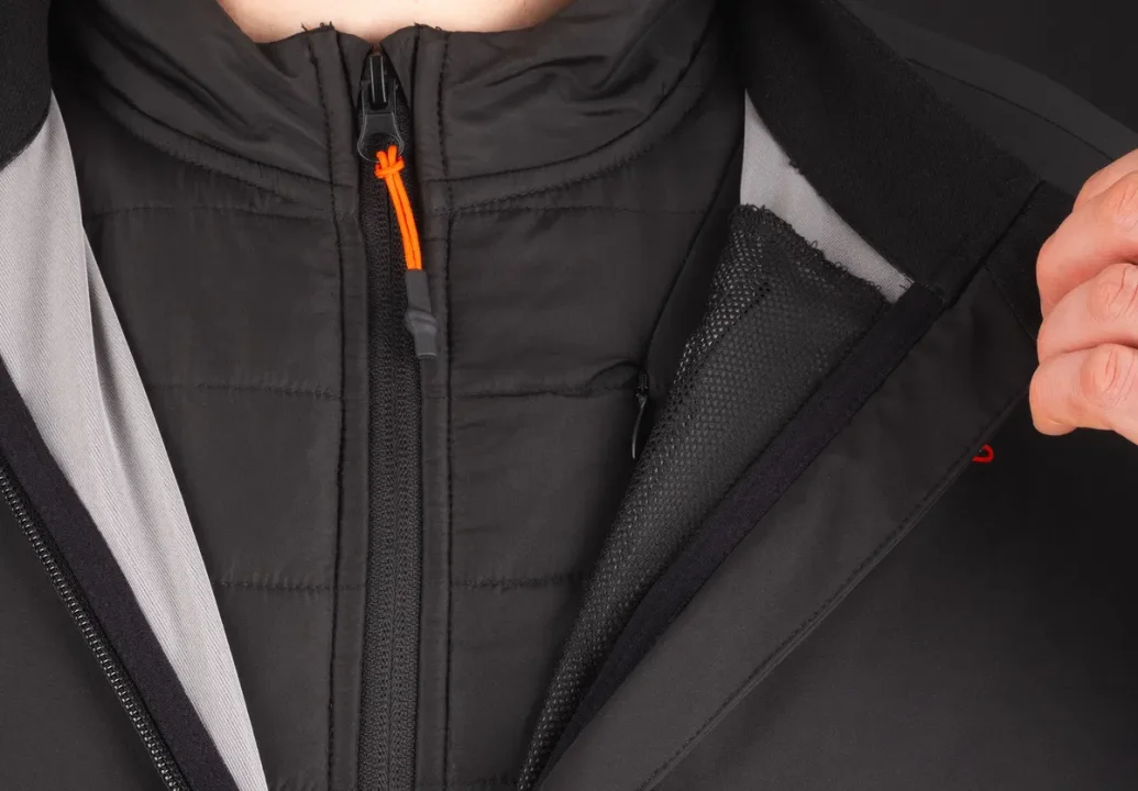 - Ön fermuar boyunca yer alan rüzgar geçirmez alt şerit