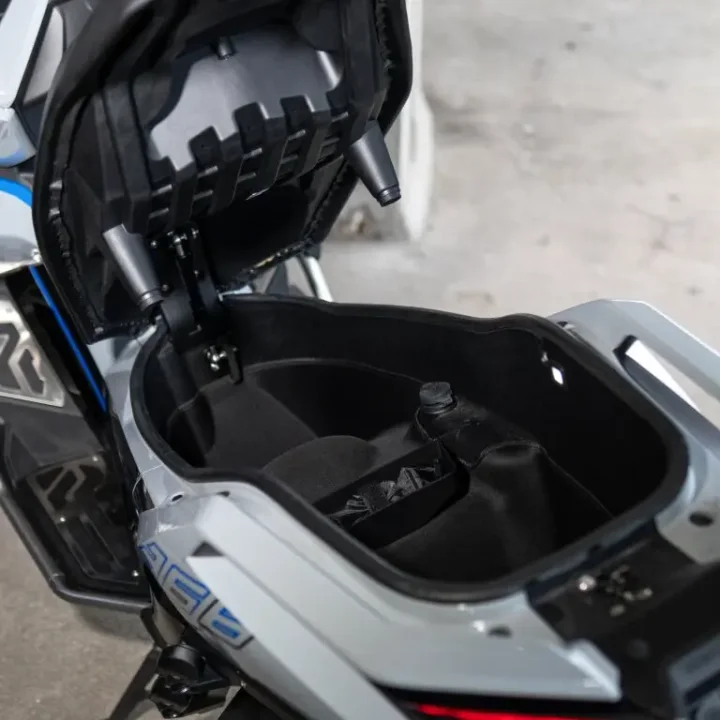 Bu sistem hem gece sürüşlerinde görünürlüğü artırıyor hem de modele modern ve premium bir görünüm kazandırıyor. Tam renkli LCD gösterge paneli ise hız, devir, yakıt seviyesi ve diğer sürüş verilerini net ve okunabilir bir şekilde sunuyor. Güncel scooter kullanıcılarının beklediği dijital deneyimi eksiksiz karşılıyor. Zontes 368G’nin boyutları konfor, denge ve manevra kabiliyeti arasında iyi ayarlanmış bir denge sunuyor.
